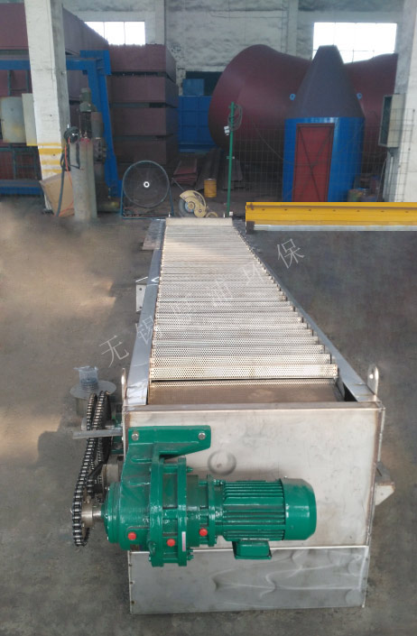 網板式階梯格柵機能清除漂浮物、纖維物質,運行時不堵塞雍水,能將柵渣清除干凈。主要由驅動裝置、機架、傳動鏈輪、牽引鏈條、網板及電氣控制柜等主要部件組成。工作時網板在二側傳動鏈條的帶動下,自下而上將整個渠道寬度范圍內的污物向上提取,抵達上部時,通過鏈輪的轉向功能,自動完成卸污工作。