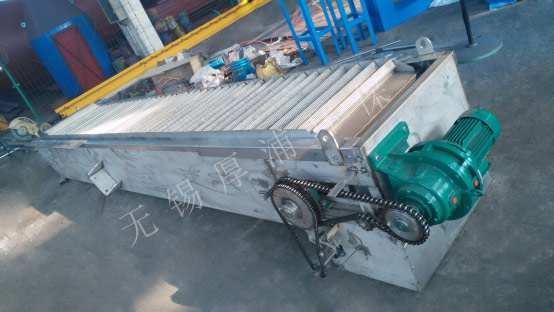 網板式階梯格柵機的驅動裝置位于機架上部,除傳動裝置外,其余均采用不銹鋼材料制造。驅動裝置采用軸裝式減速機,在機架二側設置螺旋式調節裝置,以作調整傳動鏈條張緊用。